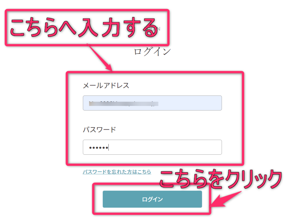 ③ 「メールアドレス」・「パスワード」を入力して「ログイン」をクリックします。