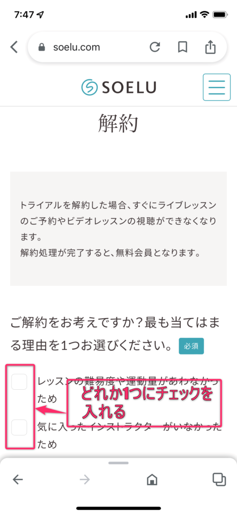 オンラインヨガ SOELU(ソエル)「30日100円」トライアルの「解約」と「退会」のやり方を知りたい!