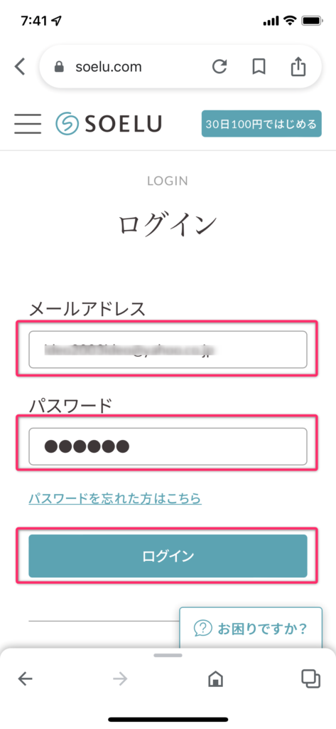 ③ ログイン画面が出たら、「メールアドレス」・「パスワード」を入力してログインします。